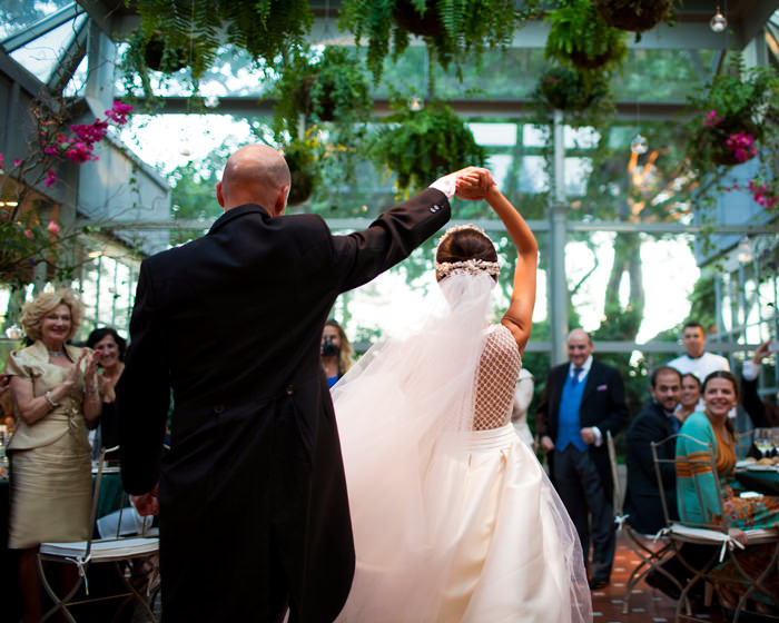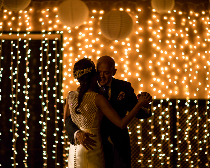 Qué maravilla de boda. La novia preciosa y con una sonrisa fantástica, el vestido una pasada (decir a las de las mangas que este tipo de vestido perdería mucho con mangas, resultaría muy «pesado» y serio), la decoración floral maravillosa, así como las luces. Vamos, no le pondría ni un pero. ¡Enhorabuena a los novios!